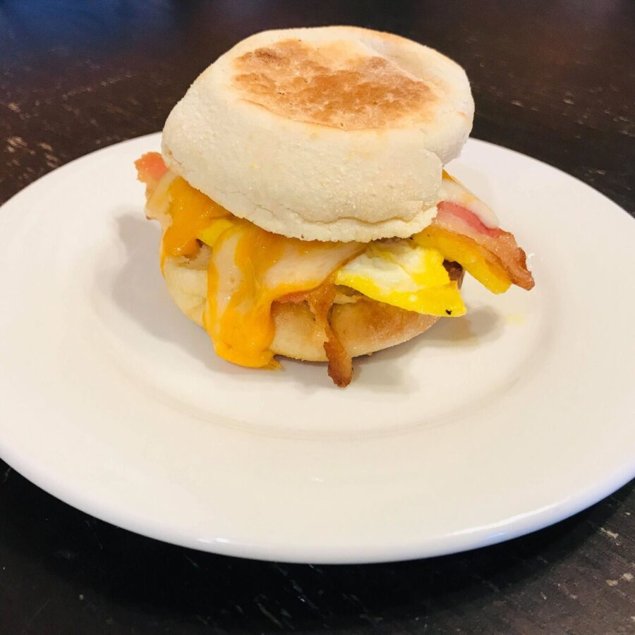 Toasted English Muffin or wrap served with your choice of bacon, sausage, ham, egg & cheese, or peanut butter & jam