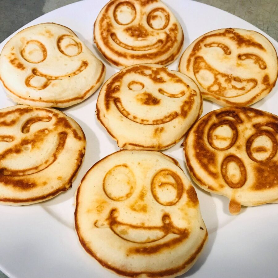 Pancakes that smile back at you! Served with Québec organic maple flakes